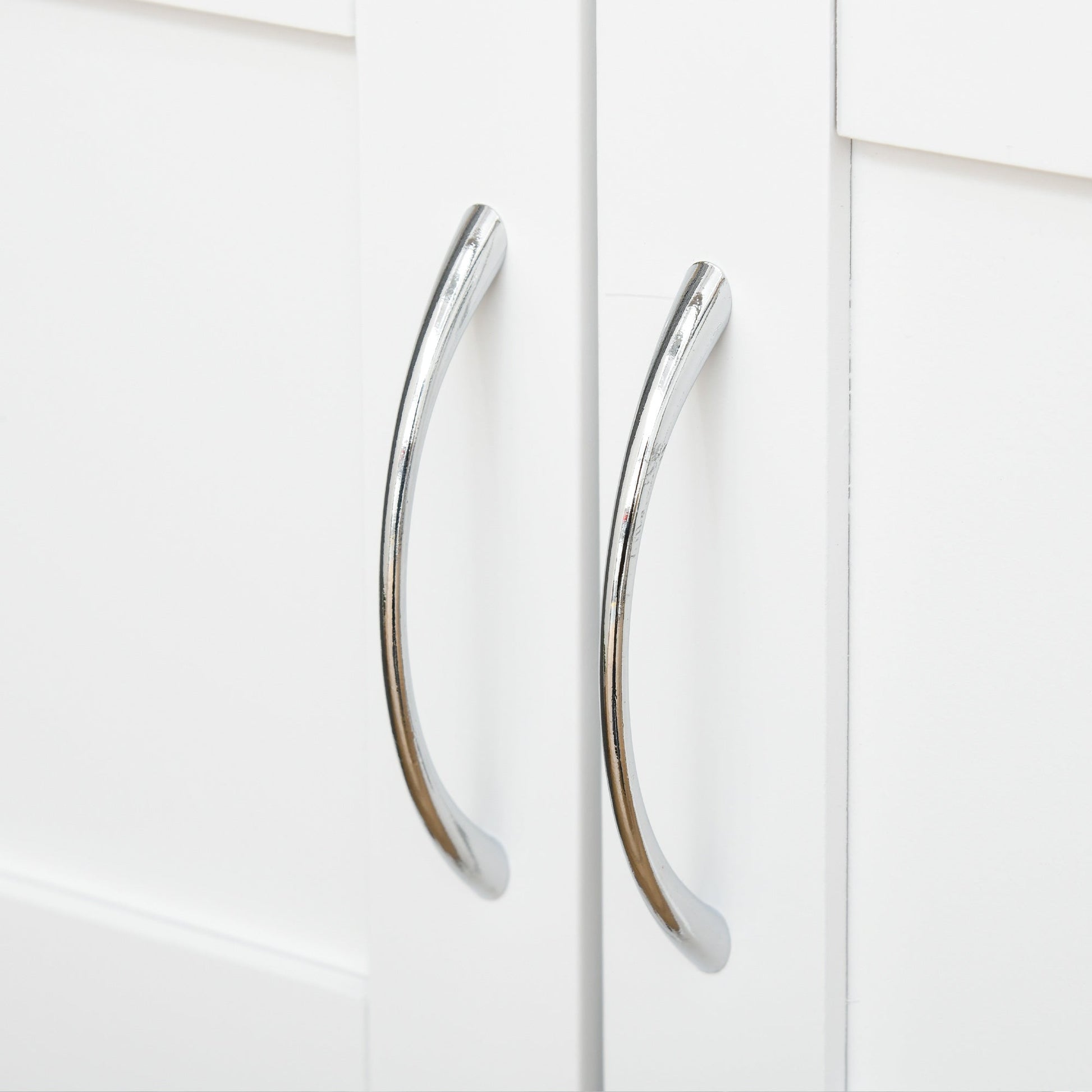This storage trolley on wheels is an ideal option for any kitchen and dining space - no matter the size. Comes with a drawer, three three-bottle wine shelves and three cabinets provide plenty of room for holding everything together. Wheels allow you to move it where you desire. The rubberwood countertop is hard and ideal for prepping drinks garnishes when friends come over. Simple, white clean design - a modern home addition.
