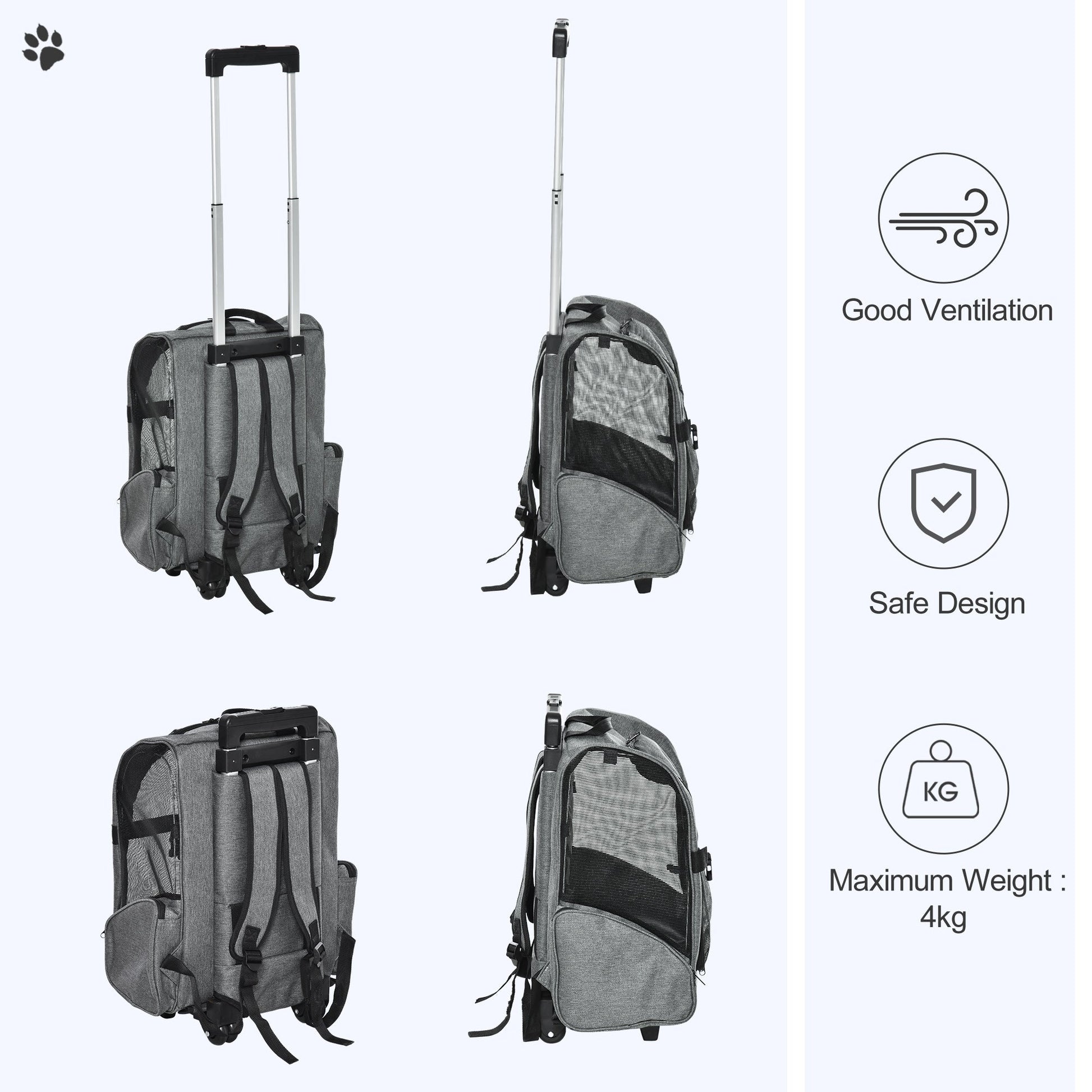 PawHut Pet Travel Backpack Bag Cat Puppy Dog Carrier w/ Trolley and Telescopic Wheel